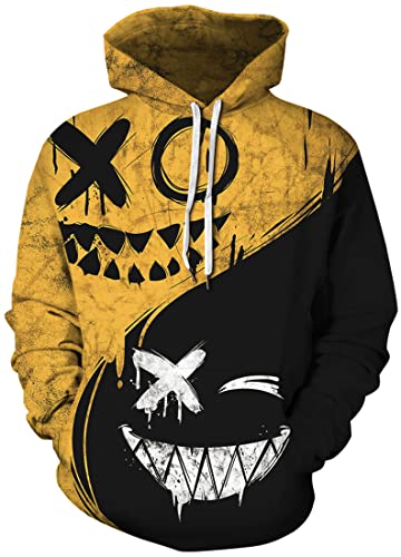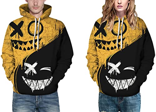 FLYCHEN Uomo Felpa con Cappuccio 3D Stampato Grafico Halloween Festa con Motivo Sorriso Parodia Ugly Coslay Felpa Coppia Sorriso - Giallo-Nero 549 - M