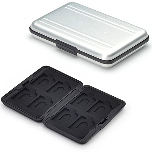 Flycoo - Custodia per schede di memoria, protezione antiurto e antipolvere, impermeabile, antimagnetica, scatola per 8 schede SD 8 TF/Micro SD carte argento argento