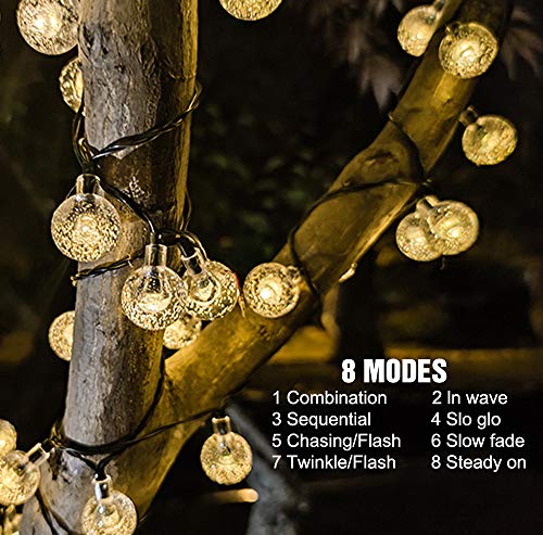 Le luci LED a globo ad energia solare sono costituite da 8 diverse modalità che includono lampeggiamento, onde, dissolvenza, combinazione, inseguimento / lampeggiamento, dissolvenza lentamente, scintillio / lampeggiante e costante su cui aiuta a creare diversi ambienti atmosferici legati all'atmosfera della tua festa. Ideale per le coppie per cenare all'aperto in giardino rendendolo più romantico e suggestivo