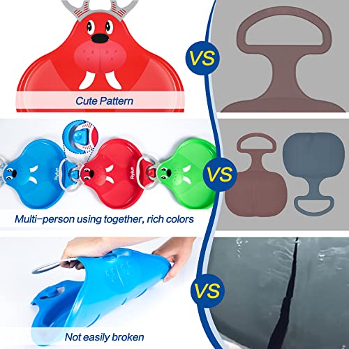 Flyfun 3 Pezzi Slitta da Neve per Bambini, Leone Marino Collegabile Slittino Giocattolo con Manico, Bob Slittino da Neve per Neve, Erba e Sabbia 3 Colori Snow Sled in Discesa per Sport Invernali