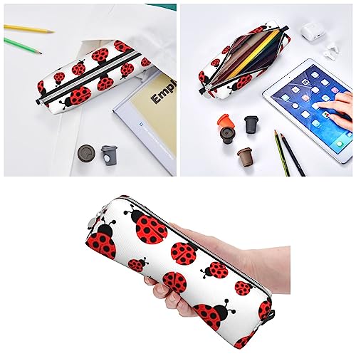 FLYIFE Astuccio in pelle con motivo Torre Eiffel, astuccio con cerniera, astuccio per matite, matite, matite, organizer per ragazze, ragazzi, studenti, scuola, ufficio, università, Coccinella, Taglia