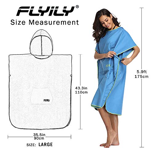 FLYILY Asciugamano da Surf Asciugamano con Cappuccio Asciugatura Rapida Taglia Unica Accappatoio(Blue,L(Fit for Adult))