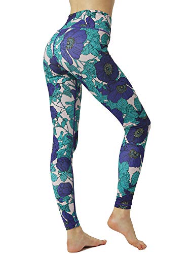 FLYILY Leggings Sportivi da Donna Pantaloni Elasticizzati Lunghi Stampati Pantaloni Sport Vita Stretta Vita alta Controllo Pancia(3-NavyFlower,S)