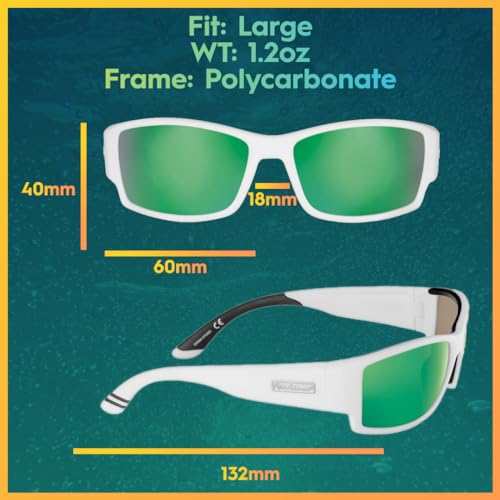 Flying Fisherman Razor - Occhiali da sole polarizzati, montatura bianca opaca, lenti a specchio verde ambra