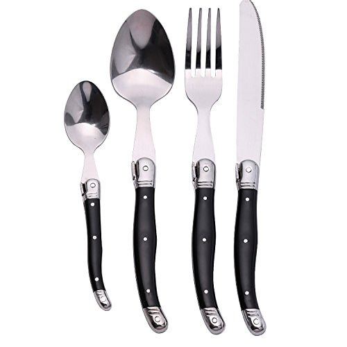 FlyingColors, Set di posate Laguiole in acciaio inox, con scatola in legno, Acciaio INOX, 34Black