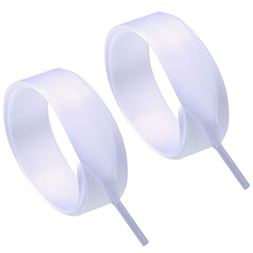 Flyingfish 2 paia lacci a nastro, lacci piatti, lacci per scarpe, lacci di satinato, larghi 2cm di larghezza 100cm Bianco + Bianco