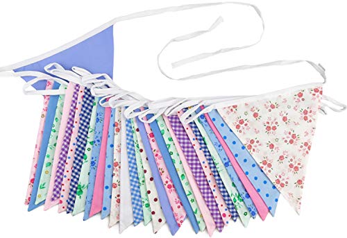 Flyingstart Bandierine a forma di bandierine in tessuto con motivo floreale, 10 m, stile vintage, stile shabby chic, per feste di compleanno e matrimoni