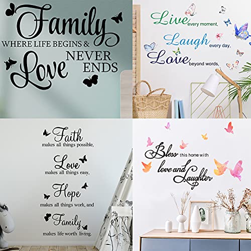 Flymind 4 sets Adesivo Murali Frasi Scritte, Farfalle Adesivi da Parete in vinile con citazioni Versetto Detti ispiratori per Soggiorno E Camera da Letto Di Casa Cucina Arte Parete Decorazioni