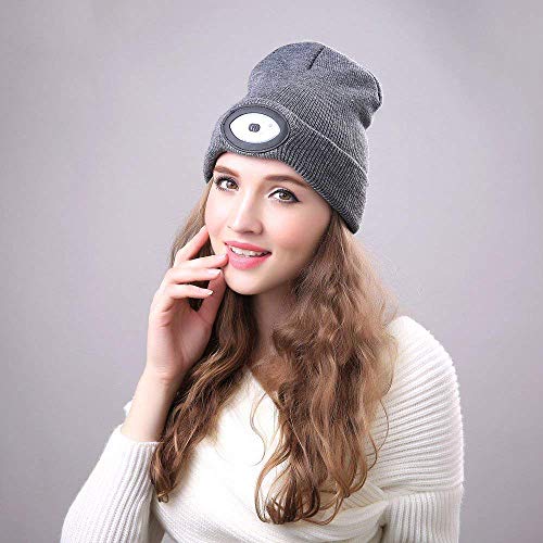Flyproshop Cappello Invernale per Donna, Cappello Luminoso Ricaricabile Unisex Berretto Sportivo Caldo Morbido Cappellino Invernale Mani Torcia con luci di Emergenza a LED