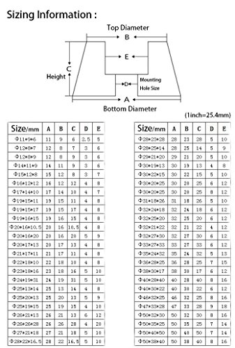 Flyshop Set di 4 piedini in gomma sintetica per paracolpi neri affusolati con rondelle, diametro 3,2 cm x altezza 2 cm