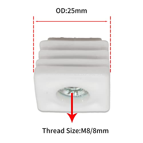 Flyshop - Tappi quadrato in plastica con filettatura M8, 25 mm, 4 pezzi