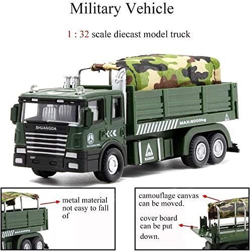 FLYTYSD Macchinine Giocattolo, 1:18 Camion Tattiche Militari, Camion Militare Modello Blindato dell'Esercito, Veicolo da Trasporto Soldato Veicolo da Trasporto Metallo, Giocattolo da Tirare, Verde