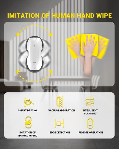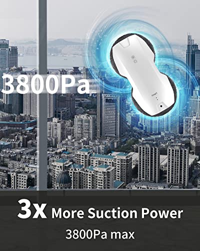 【Pulizia intelligente】 FMART robot lavavetri rileva automaticamente il grado di sporco e regola di conseguenza la potenza di aspirazione. Potenza di aspirazione 3800Pa - Adatto per vetri di grandi dimensioni, piastrelle, pavimenti, specchi, porte in legno e altre superfici lisce.