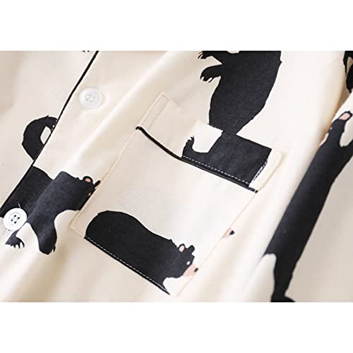 Fmiljiaty Pigiama Set Donna Set Pigiama da Donna in Cotone Spazzolato con Orso Bianco Carino Autunno Casual Fashion Sleepwear Set da Due Pezzi Loungewear Women Nightwear