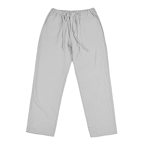 Fmkaieo Pantaloni Estivi da Uomo in Cotone e Lino con Tasca Taglia Larga Pantaloni Casual Elasticizzati Tinta Unita Pantaloni Moda con Coulisse, Pantaloni per Sport, Spiaggia, Turismo