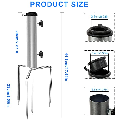 [Taglia adatta]: Qquesto picco per ombrellone è lungo di 44 cm, l'ancoraggio a terra è lungo 23 cm, la lunghezza del tubo del fissaggio è di 21 cm e il diametro dell'apertura del tubo è di 3 cm,Adatto per tutti i pali inferiori a 3 cm. Rimovibile Picchetti Ombrellone sono tre corti e uno lungo, 4 Forchette,il che consente un ancoraggio più forte nel terreno a diverse profondità.