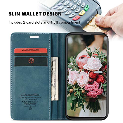 FMPC Cover Compatibile Samsung Galaxy A51, Libretto in Pelle di qualità Superiore con Slot Custodia Protettiva Magnetica Flip Cover Bumper Portafoglio Fondina Antiurto Case, Blu Verde