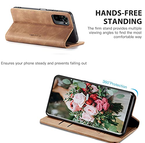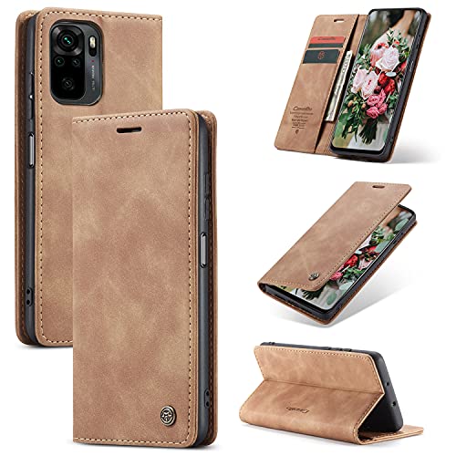 FMPC Cover Compatibile Xiaomi Redmi Note 10 4G/Note 10S, Cover in Pelle di qualità Superiore con Slot Custodia Protettiva Magnetica Flip Bumper Portafoglio Fondina Antiurto Case, Marrone