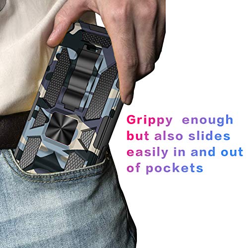 FMPC Cover per iPhone 13 Pro Max, Military Grade Anti-Caduta Antiurto Custodia con Supporto Cavalletto, PC/TPU Bumper Armor Protezione Silicone Case Cover - Grigio Camouflage