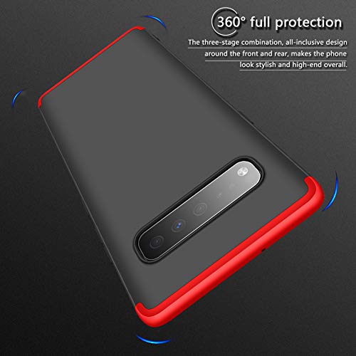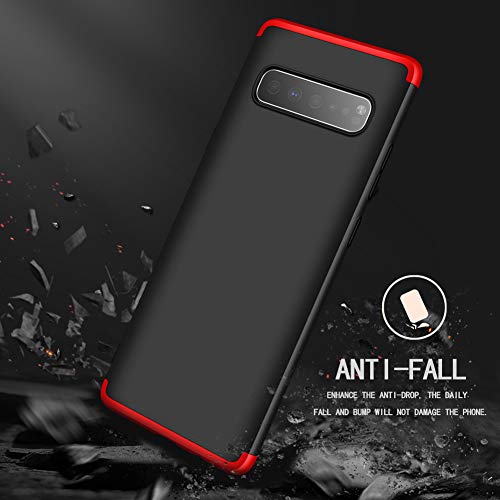 FMPC Cover per Samsung Galaxy S10(5G), Custodia in PC Rigida con 3D Vetro Temperato Struttura[3 in 1] Bumper Finitura Opaca Corpo Intero Ultra Slim Case Antiurto AntiGraffio-Rosso Nero
