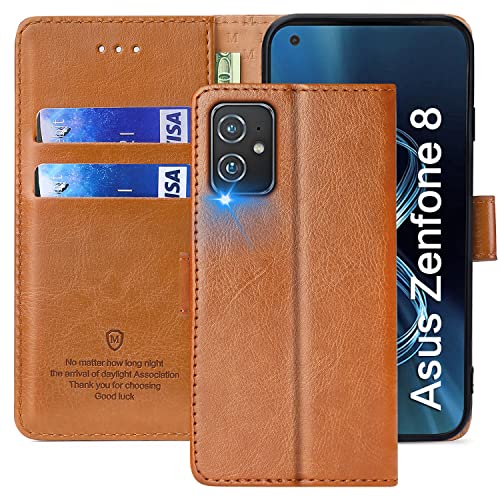 FMPCUON Cover per ASUS ZENFONE 8,Cover in Pelle ASUS ZENFONE 8,Flip Wallet Case Custodia in Pelle PU Premium,con Magnetica a Scatto per ASUS ZENFONE 8,Marrone