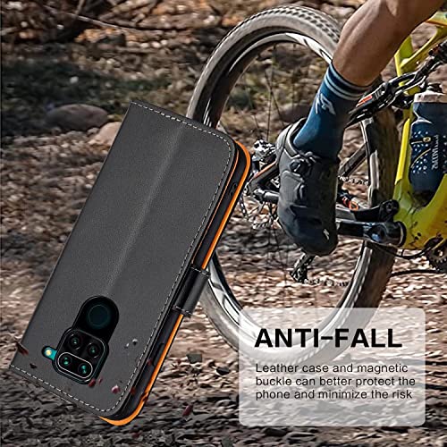 FMPCUON Cover Compatibile per Xiaomi Redmi Note 9 Custodia in Vera Pelle,Flip Libro Custodia in Vera Pelle Portafoglio Kickstand Slot,Magnetica,Protettiva Caso in PU - Nero