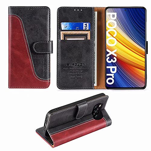 FMPCUON Custodia Compatibile per Xiaomi Poco X3 NFC/Poco X3 PRO/Poco X3 Cover a Libretto in Pelle di qualità Premium Portafoglio Flip Caso [Slot][Supporto Stand] [Chiusura Magnetica],Rosso/Nero