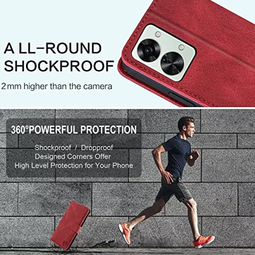 FMPCUON Custodia per OnePlus Nord 2T, Flip Custodia in Pelle OnePlus Nord 2T, Cover a Libro OnePlus Nord 2T Magnetica Portafoglio per OnePlus Nord 2T Case, Rosso