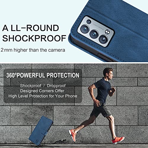 FMPCUON Custodia per OPPO Reno 6 Pro Plus, Flip Custodia in Pelle OPPO Reno 6 Pro Plus, Cover a Libro OPPO Reno 6 Pro Plus Magnetica Portafoglio per OPPO Reno 6 Pro Plus Case, Blu