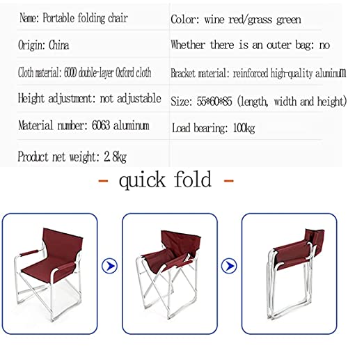 FMXQYH Sedia da Regista Portatile Sedie da Campeggio Pieghevoli Acciaio Adulti, for Giardino Picnic Spiaggia attività all'Aperto Supporta Fino a 100kg (Color: Green)