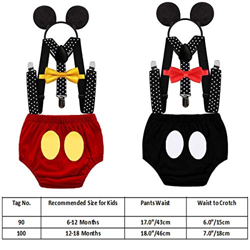 FMYFWY Costume da Topolino, Neonato Bambino 1 ° Compleanno Outfits per Festa Fotografia Carnevale Halloween, Pantaloncini + Bretelle + Papillon + Fascia per Topolino, Rosso, 6-12 Mesi