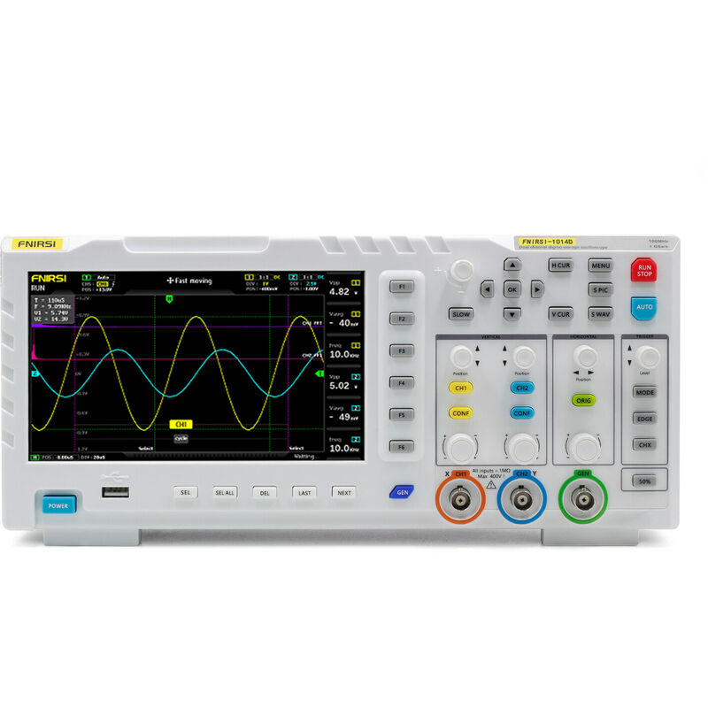 FNIRSI-1014D è un oscilloscopio e generatore di segnali due in uno, la frequenza di campionamento in tempo reale è 1GSa / se con larghezza di banda analogica di 100 MHz * 2, con schermo LCD TFT da 7 pollici, protezione integrata ad alta tensione il modulo può tollerare una tensione continua fino a 400 V, senza preoccuparsi dell'incidente di combustione dell'oscilloscopio causato dalla sonda che non si sposta sulla marcia 10x, generatore di segnale di funzione DDS integrato e uscita di taglio originale del settore (@ 2,5 vpp), tutti i passi di frequenza del segnale è 1Hz, supporta 14 tipi di segnale di funzione standard e un segnale di taglio personalizzabile, taglio Il dispositivo di uscita intercetta parte o tutta la parte dei segnali complessi misurati dall'oscilloscopio come segnale di uscita del generatore di segnali, che può memorizzare fino a 1000 segnali personalizzati segnali di interruzione. Vieni a provarlo, non ti deluderà. Caratteristiche: Generatore di segnale DDS