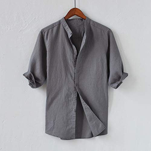 FNKDOR Primavera Ed Estate Uomo Casuale Sciolto Camicia Cotone E Lino Mezza Manica Pulsante Girocollo Camicetta Grigio M