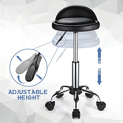 FNZIR Rotondo Sgabelli PU Pelle Sedile Altezza Regolabile Sgabello con schienale basso Girevole Con Ruote Nero