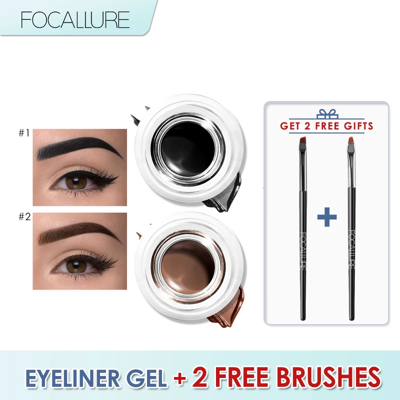 Focallure Eyeliner Gel Cream Eyebrow Waterproof Long-lasting Professional Eye makeup with 2 Brushes