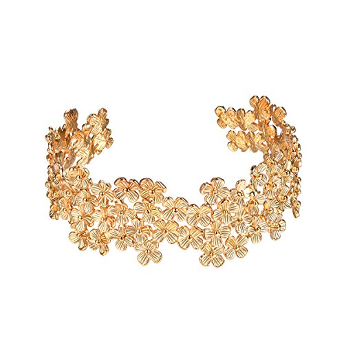 FOCALOOK Bracciale/Orecchini Donna Fiore Fiori Scultura Stile Vintage Bracciale Aperto Regolabile Delicato Elegante Placcato Oro 18K Regalo Natale Compleanno Anniversario, Oro, Confezione Offerta
