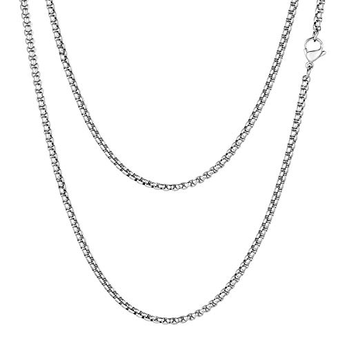 FOCALOOK Collana Uomo Donna Catena Scatola a Maglia, Acciaio Inossidabile/Placcato Oro 18K, 3 mm Larghezza, Stile Punk Hip Hop Rapper, Argento Nero Oro, 46/51/55/61/66/71/76/81 cm
