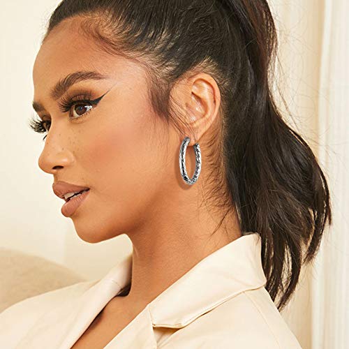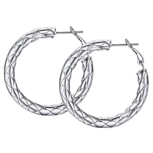 FOCALOOK Orecchini Cerchio Acciaio Argento 30mm Campanelle Orecchini Argento Orecchini a Cerchio Spessi