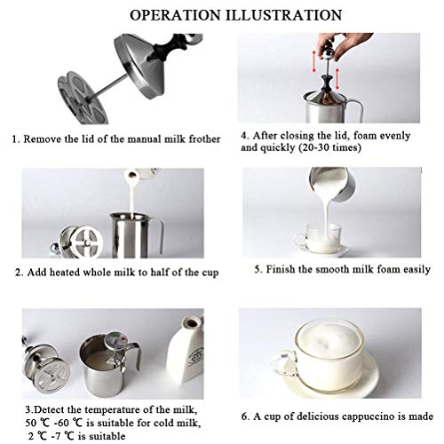 【Schiuma di latte leggermente】 Il montalatte produce una schiuma densa e ricca per coprire deliziose bevande calde o fredde con lo schermo del filtro a doppio strato in 30 secondi o meno. Questo è un modo tradizionale, il modo più semplice ed efficiente, senza la necessità di batterie.