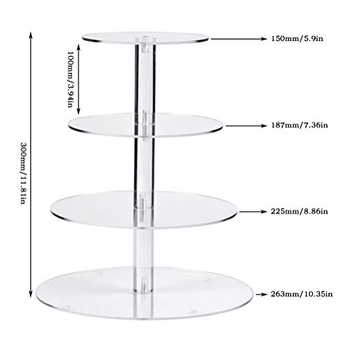 FOCCTS Vassoio per frutta in acrilico trasparente con 4 piani per torta per matrimonio, compleanno, festa, ecc