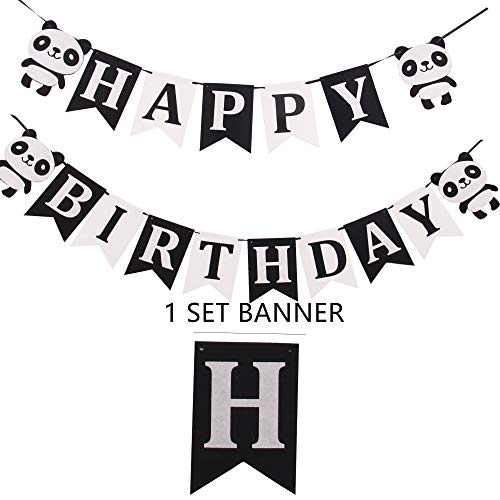 Panda Party Supplies: Panda party decorations include 1 panda feltro banner di buon compleanno, 6 panda palloncini in mylar da 18 '', 20 palloncini in lattice (bianco e nero) 12 toppers per torta, 12 panda per bambini.