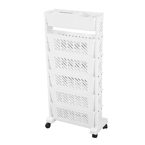 Focket Scaffale mobile, carrello portaoggetti scorrevole su scrivania, organizzatore compatto per scrivania con ruote, carrello multiuso per ragazzi, bambini, studenti, studio in casa (6 strati)