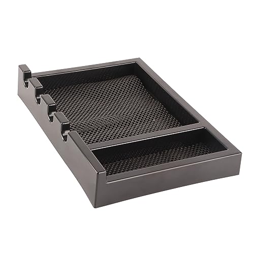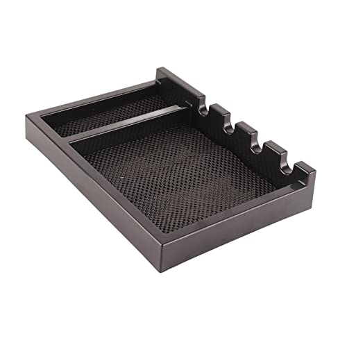 【CAPACITÀ ELEVATA】 Il vassoio professionale da barbiere per stilisti è dotato di 4 tacche sul fondo in modo che i tagliacapelli a filo possano essere inseriti senza che i fili si aggroviglino o intralcino. Robusto e antiscivolo, questo vassoio per tagliacapelli può contenere fino a 4 tagliacapelli a filo o 6 tagliacapelli / trimmer a batteria. Il piccolo scomparto è utile per tenere fermagli o pettini.