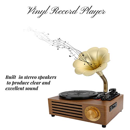 Fockety Giradischi in Vinile, Bluetooth 5.0 Scheda di Memoria USB Giradischi Vintage Giradischi Bluetooth, Giradischi Vintage 33/45/78 RPM 3 velocità con Trasmissione a Cinghia