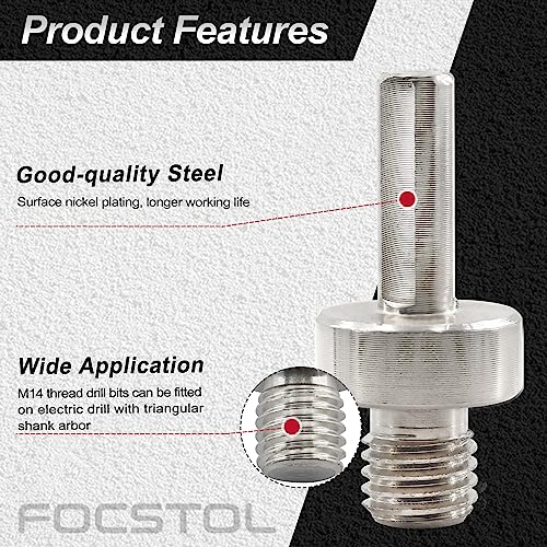 FOCSTOL Adattatore per Punte Trapano - 2 pezzi M14 Filettatura a 9,5mm Triangolo Gambo Adattatore per Sega a Tazza Diamantata per Trapano Elettrico