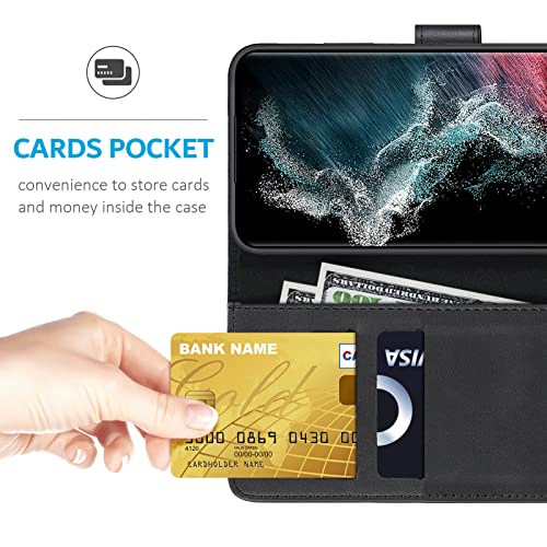 Focusor Cover a Libro Samsung Galaxy S22 Ultra,Custodia in Pelle Samsung S22 Ultra Magnetica,[Portafoglio] Custodia Pelle Sintetica TPU Antiurto,Funzione Supporto Slot Schede per S22 Ultra 5G,Nero
