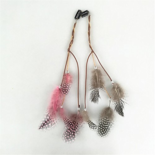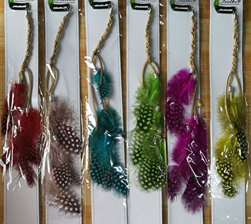 Fodattm - Extension per capelli colorate, da donna, realizzate a mano, stile bohémien, hippie, con piuma con fermaglio, 6 pezzi
