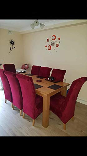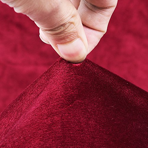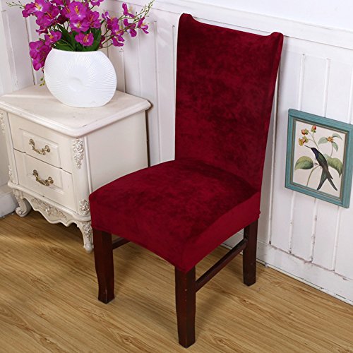 Fodera elasticizzata in velluto per sedia, in tessuto peluche di elastan a pelo corto, a tinta unita, per la decorazione della casa, Velluto, Rosso vinaccia, Set of 6 (Large)