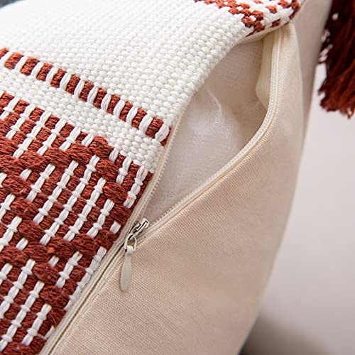 Set di 2 Fodere per Cuscini Decorativa, Fodere Cuscini Quadrati con Nappe Copricuscini Boho per Divano Letto Soggiorno Camera da Letto 50x50cm, Rosso e Bianco