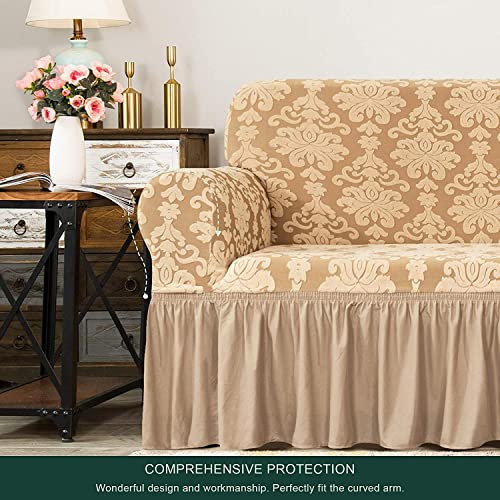 Fodere Per Divano Elasticizzate 1 Pezzo, Fodere Per Poltrone In Tessuto Damascato Jacquard, Fodera Antiscivolo In Poliestere Con Motivo Floreale In Spandex E Gonna (Albicocca,3 posti(185-235 cm))